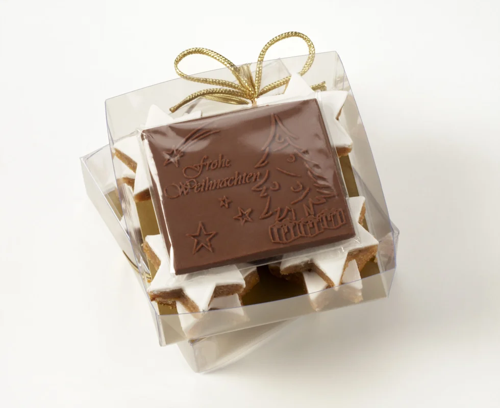 Weihnachten naht und auch die Schokologo-Bäckerei verkürzt mit feinen Überraschungen das Warten auf das Fest. Je nach Geschmack und Gustus werden feinste, zart schmelzende Schokoladensorten mit unterschiedlichstem, knusprigem Gebäck verbunden und obendrein noch mit der gewünschte Prägung versehen, wie beispielsweise dem Firmenlogo.