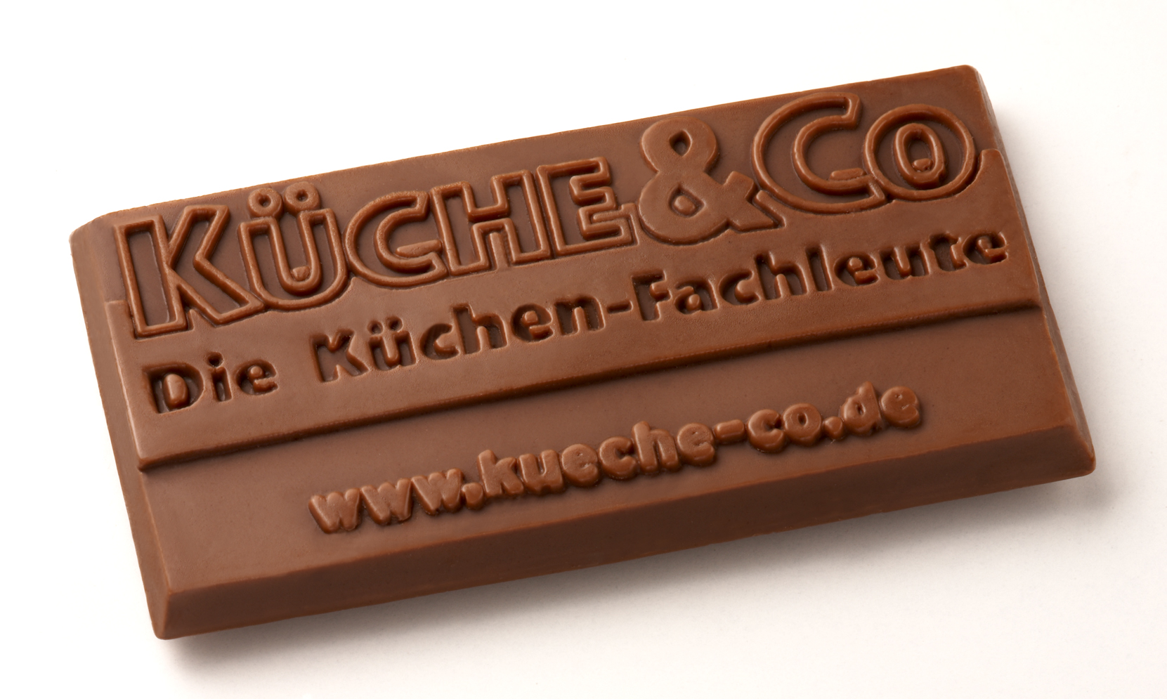 Der Griff während der Lektüre nach etwas Schokoladigem gehört für viele zum Lesevergnügen dazu wie das Umblättern der Seiten. Verwöhnen Sie Ihre Kunden doch mit einem Werbegeschenk nach deren Geschmack. Verschicken Sie zu Ihrem Firmenjubiläum ein Schokoladenbuch oder gießen Sie die Buchstaben Ihres Firmennamens in Schokolade. Ebenfalls hoch im Kurs stehen kleine Schokoladentäfelchen, auf die Ihr Firmenlogo geprägt wird, ideal als Giveaway bei Veranstaltungen.